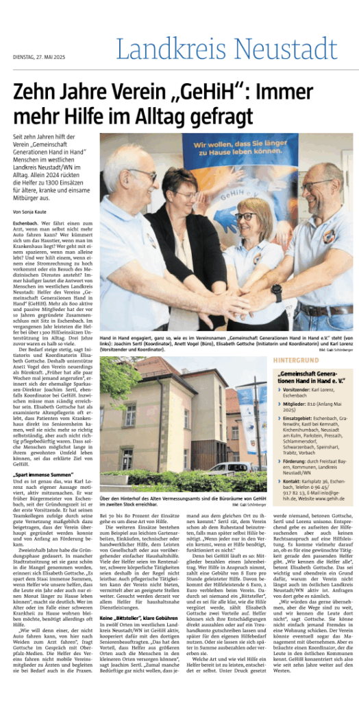 Wir bedanken uns herzlich bei der Reporterin Sonja Kaute für das angenehme Interview und die Berichterstattung über Generationen Hand in Hand e. V. in der Tageszeitung Der neue Tag.